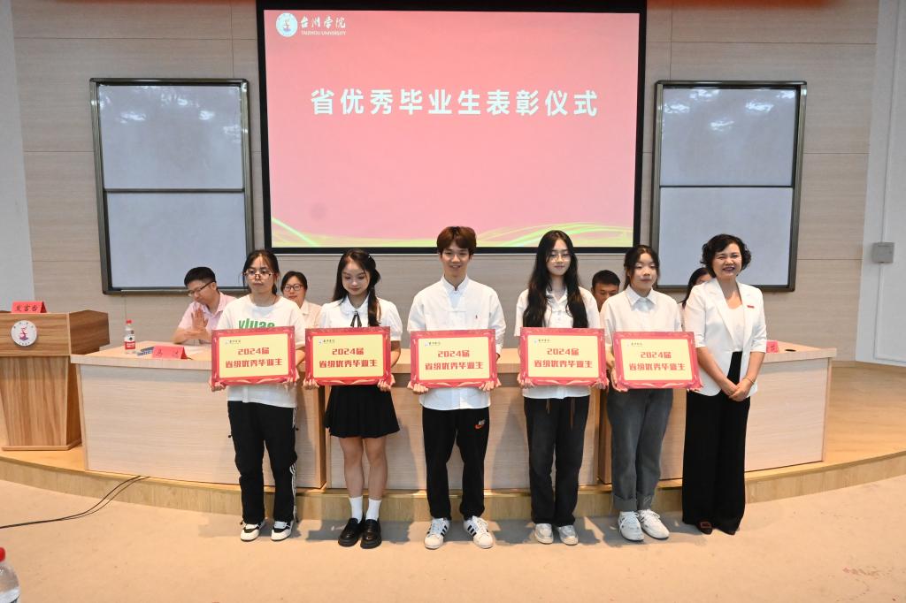 典礼对省优、校优毕业生进行表彰,祝贺同学们取得的优异成绩,希望他们珍惜荣誉,再接再厉、再创佳绩,让优秀成为习惯。同时,聘任10位毕业生担任员工联络大使,希望他们当好母校的宣传员、信息员和组织员,不断推动母校和员工同发展、共进步。
