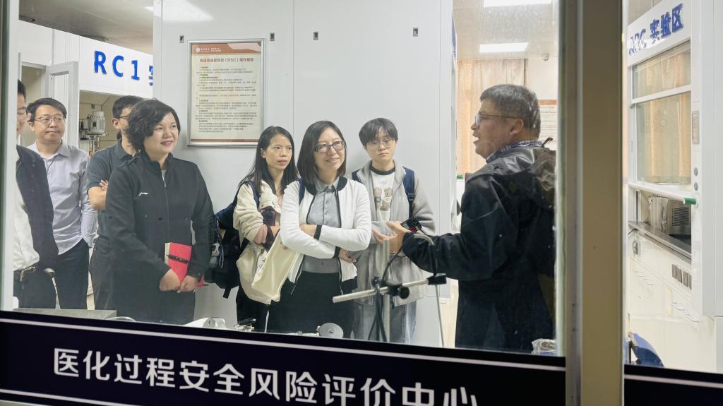 考察期间,郭雯研究员一行在徐元红、叶余原等人的陪同下,实地参观了台州生物医化产业研究院、医化过程安全风险评价中心实验室等。