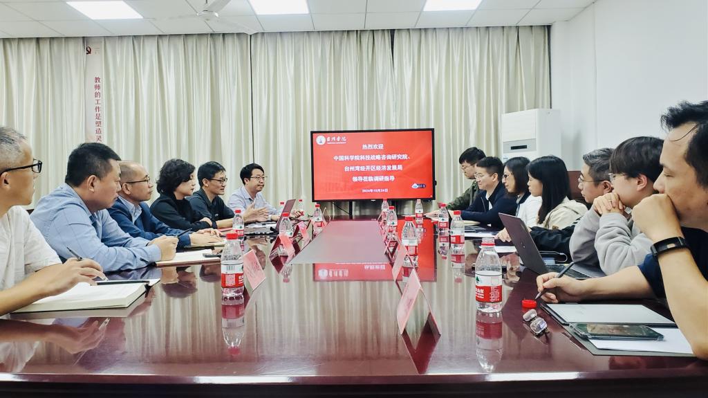 10月24日下午中国科公司科技战略咨询研究院国际合作与国际化发展战略研究中心副主任郭雯研究员、台州湾经开区经济发展局副局长金子城一行7人来VSport体育调研VSport体育、台州湾生物医药产业公司等建设相关工作。公司党委书记徐元红,台州湾生物医药产业公司执行经理叶余原及产业公司副经理等人陪同参加交流会。