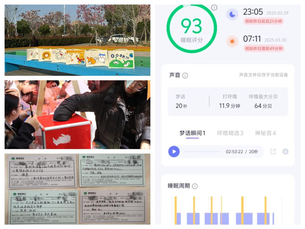 活动期间,公司通过“知识普及+活动体验+服务提升”三维联动,采取五育并举的实践方式,为员工健康成长保驾护航。3月,“心向阳光·愈见美好”一起做春日“显眼包”鼓励员工发挥想象力,大胆运用色彩,手工绘制包包,用手绘呈现春日的盎然与美好;“共学‘心’知识·助力‘心’成长”心理健康教育宣传活动通过年轻化、互动性强的方式传递心理健康理念,在轻松愉悦的氛围中学习知识;“采撷春光·渐入梦乡”睡眠打卡活动让同学们通过15天睡眠打卡计划养成早睡早起的良好习惯,帮助大家调整作息时间、提升学习效率。4月,“邮储‘心’声·为爱护航”情绪银行活动通过手写卡片形式记录情绪波动故事,有效提升员工的情绪调节能力,帮助其缓解情绪和生活中的压力;“精准赋能·为青春扫雷”心理排查通过高年级心理普查和线上咨询、中低年级问卷调查和寝室走访等多渠道动态关注员工心理状态,推进“心理晴雨表”排查工作,及时帮助员工解决困难;“‘心’动同行·‘辈’感温暖”心理沙龙活动中,心理委员们结合自身工作实际,从助人情况、存在问题、未来展望等方面进行汇报,充分发挥其桥梁纽带作用,提升其专业能力和知识素养。5月,“‘趣’享运动·‘味’你喝彩”阳光心理运动会践行“以体育心”理念,将运动与减压相结合,让同学们在合作中释放压力、增进交流;“‘心’星闪耀·温暖同行”心理健康教育专题讲座邀请校心理咨询中心史莉娜老师讲解心理知识,从神话故事到现实案例深度解析自恋的概念与意义,引导同学们正视自恋,学会欣赏自己。6月,“以花为媒,予以有爱”以话换花活动鼓励毕业生勇敢表达想说的话,用花语寄托情感,为同学们提供表达情感的方法与途径。