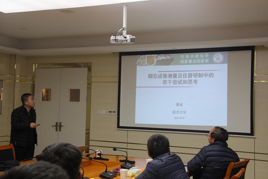 2021年12月4日下午,现代药物分析研究所在医药化工与材料工程公司C-301会议室举行学术研讨会,会议邀请了南京大学国家杰出青年基金获得者周东美教授、生命分析化学国家重点实验室王康教授、赵伟伟副教授、周俊副教授以及康斌副教授五位老师作学术讲座,研究所成员各自汇报近期科研工作, PI鞠熀先教授、夏兴华教授、徐静娟教授对每位成员的工作分别做了点评,并就下阶段如何凝练研究方向、如何申报项目基金等方面做了指导。