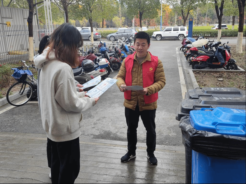 桶边值守,先锋引导。党员们来到垃圾分类桶边进行值守,监督前来投放垃圾的师生和居民,宣传垃圾分类知识,指导他们严格按照类别进行投放,并督促垃圾收运人员分类运输。
