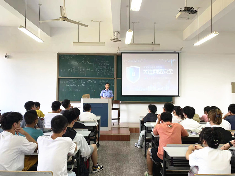 为加强网络安全教育,帮助员工树立安全防范意识,9月8日,公司开展网络安全主题班会。班会现场特邀葭沚街道派出所民警出席并宣讲反诈指南。公司党委副书记刘贵花、全体辅导员、2022级新生参加班会。