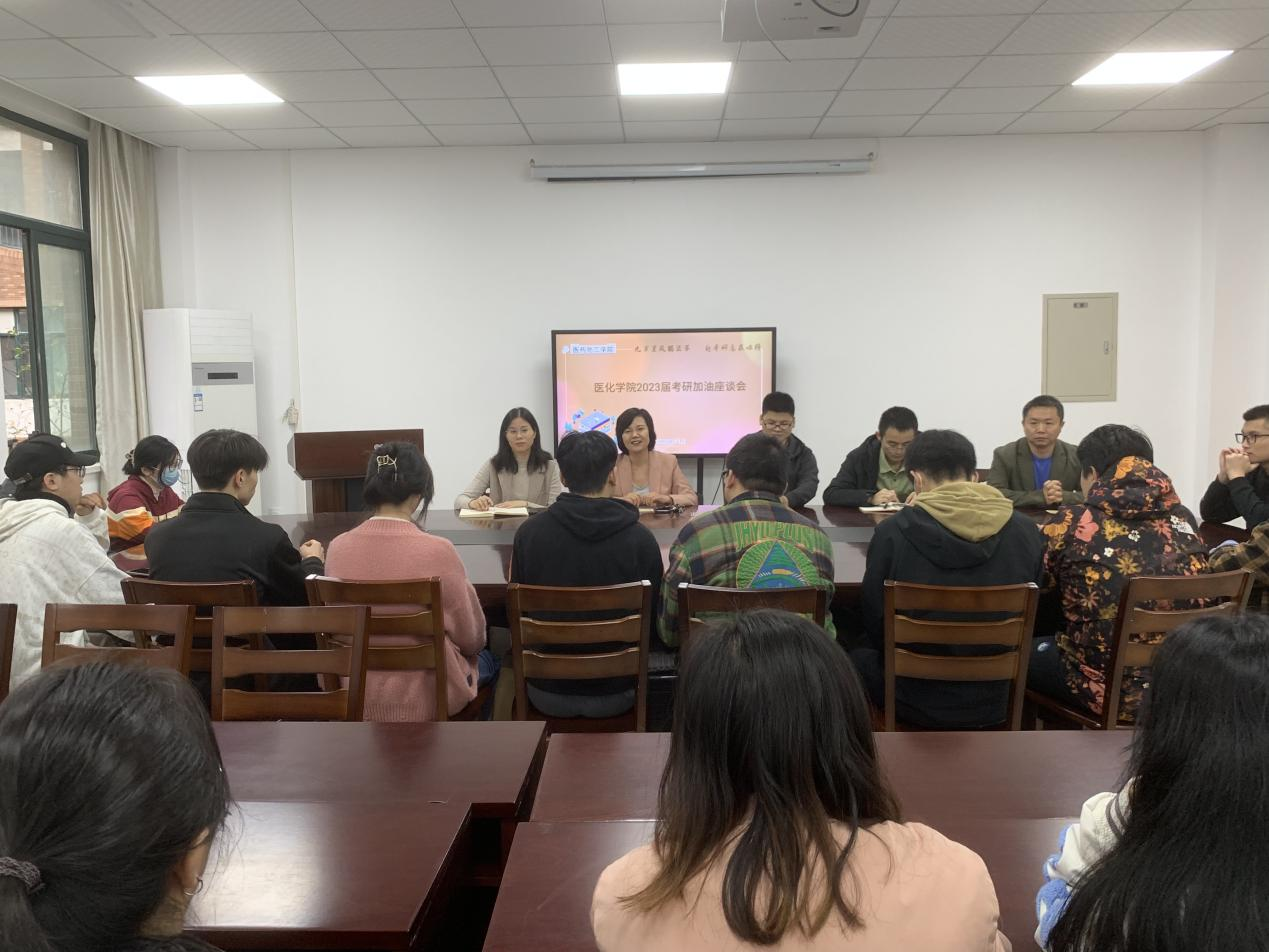 活动伊始,同学们在签名墙上写下了心中的祝语与期许并与现场老师合影留念。座谈会上,徐元红鼓励大家:考研的道路是追逐梦想的过程,比的是毅力,拼的是韧性,最后冲刺关键时刻,大家要注意身体、调整心态、保持节奏,坚守初心,在考研的赛道上跑出“青春加速度”。刘贵花叮嘱大家要劳逸结合,科学合理安排复习计划,确保每天学习成效,要以自信轻松的心态和强大的心理素质应对最后冲刺时段的学习任务。班主任表示希望考研学子们长风破浪会有时,直挂云帆济沧海,以优异的成绩突出重围,书写更加绚烂的人生新篇章。