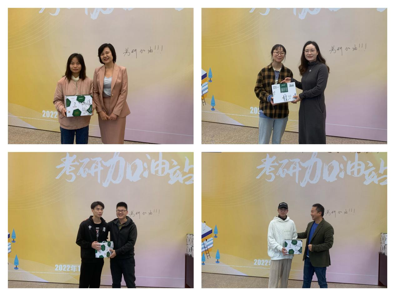 最后,老师们亲自为考研同学们发放了公司精心准备的加油礼包,也一一为考研学子送上祝福。同学们纷纷表示,感谢公司老师的关心关爱和暖心慰问,也表态将坚持不懈,认真备考,为自己美好的未来而奋力拼搏,为公司增光添彩!