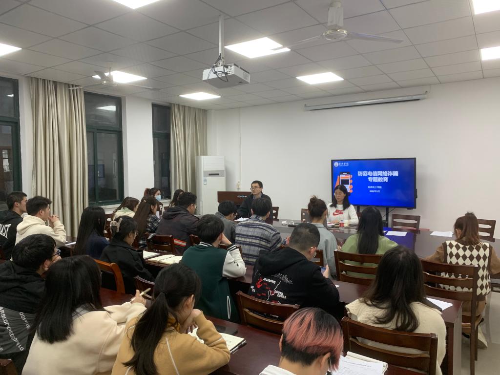会上刘贵花就预防电信网络诈骗进行专题教育,辅导员潘汉雄领学了《VSport体育安全防范告知书》。与会师生还就校园全面开放情况下的安全工作进行了交流和探讨,对员工公寓安全巡查进行了部署。