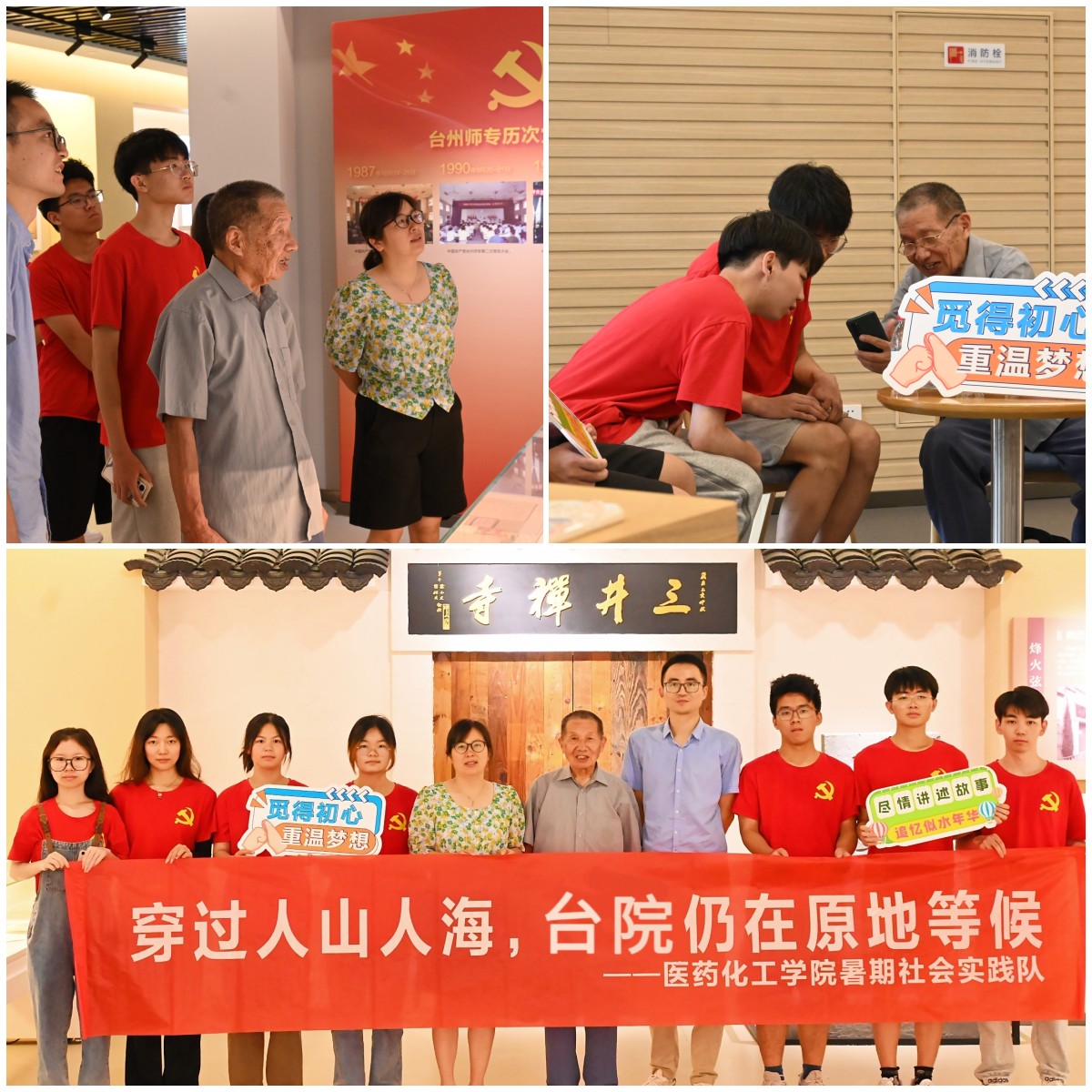 随后,此后,郑恩铭对台院精神和文化传统做出了自己的见解,年轻一代应谨遵公司校训“澡身浴德,修业及时”,员工们应加强实践动手能力和表达交流能力的培养,老师应当着重培养操作能力和社会交流能力,员工在学习化学和研究上应当打开思维、脚踏实地。最后,在实践队队员的引导下,大家一同参观了校史馆,并且回忆了诸多台院往事。