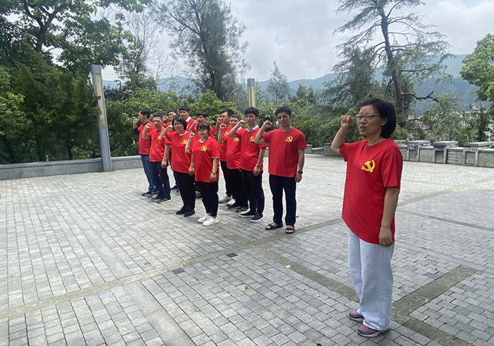 观看记录影片,重温入党誓词。教工党员们在烈士陵园纪念馆集中观看了纪录影片《星火耀黎明》,感悟红十三军二师官兵们在长达十年的艰苦斗争中,用血肉之躯谱写一曲曲英雄赞歌。随后,大家在现场重温入党誓词“我志愿加入中国共产党……随时准备为党和人民牺牲一切,永不叛党。”铿锵恢宏的誓词,强烈震撼着在场的每一位党员,一字一句,神圣而豪迈,铮铮誓言,体现了党员同志们对中国共产党的无限忠诚,坚定了为党奋斗初心和使命。