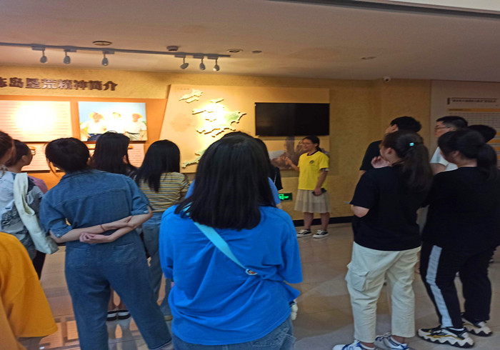 游校园,学党史,系好大学第一扣。为了让新生尽快熟悉新环境,融入老员工活,12日下午,党员与新生班助携手带领新生游览校园,教学楼、运动场、生活区和实验楼等地都留下了他们的身影,他们向新生介绍了校园内各大地标的功能,同时也传授了各自生活经验。在大陈岛垦荒精神研究中心,员工党员宣讲员带领新生参观学习了大陈岛垦荒精神,勉励大家要学习“艰苦创业、奋发图强、无私奉献、开拓创新”的大陈岛垦荒精神。