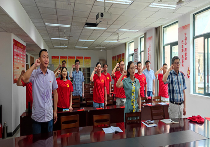 不忘初心,继往开来。首先,闫振忠带领大家重点学习习近平总书记在庆祝中国共产党成立100周年大会上的重要讲话并交流心得。他表示,在这百年华诞之际,祝福伟大的党生日快乐!生逢盛世,当不负盛世,在全面建设社会主义,现代化国家新征程上,让我们携起手来,共克时艰不负韶华,向着第二个百年奋斗目标,向着中华民族伟大复兴的中国梦奋勇前进。支部全体党员踊跃发言,大家纷纷表示要感党恩、听党话、跟党走!随后,支部党员在闫振忠的带领下庄严宣誓:“我志愿加入中国共产党,...随时准备为党和人民牺牲一切”。
