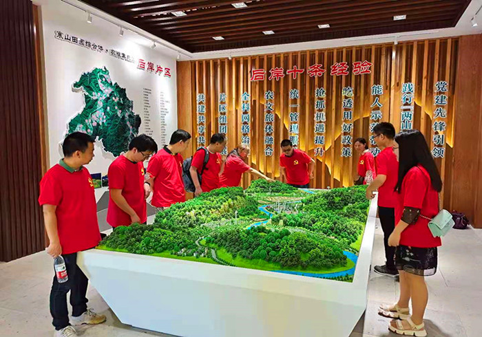 支部党员先后参观了乡村振兴公司、后岸经验馆、垃圾分类馆、文化党建长廊等教育平台,了解到该村在全村党员干部带领下开展和谐生态村建设,探索出了一条从卖石头到卖山水空气、从吃石板饭到吃旅游饭的转型新路,通过发展集群效应,将农房改造与乡村旅游紧密结合,打造了宜居宜游的美丽村庄。后岸村的发展模式---“生态文明+共同富裕”,不仅让村民受惠,而且成为全省新时代美丽乡村建设的典型样板,为各地建设美丽乡村、发展全域旅游、推动乡村振兴提供一套可看、可学、可复制的发展道路。党员同志们不由感慨红色党建引领绿色发展的明显成效,感动于村干部“以群众的需求”为导向,引领乡村振兴的决心和行动力,感受到普通人民群众对党的认可和信心。