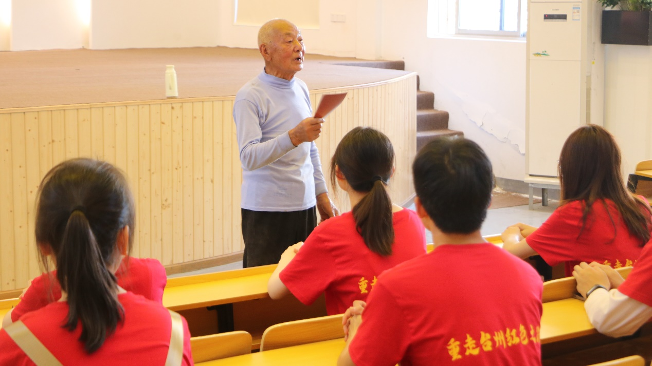 本次活动邀请到了88岁的辛杏春老人,是桐树坑村的一名老党员。自1997年起他主动担任村里纪念馆的义务讲解员。为了讲好这段红色历史,辛杏春编写了数十条朗朗上口的顺口溜,编印成册,让红色故事易于传诵。本次活动,也邀请到了他用自编的顺口溜给队员们讲解那段烽火岁月:“站岗放哨送情报,桐坑人人都做到;安全掩护又妥当,组织生活有保障;组织联系有需要,千里步行信送到。”在他看来,桐树坑之所以11年革命红旗不倒,关键就在于党心民心紧紧相连,“我们老百姓死心塌地跟党走”。同学们也纷纷对照着老人自编的顺口溜学习朗读起来,引得老人和村民们纷纷称赞。