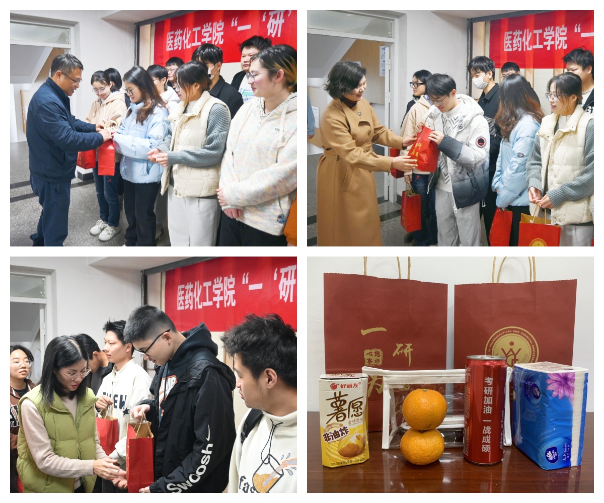 公司领导为考研学子发放加油包