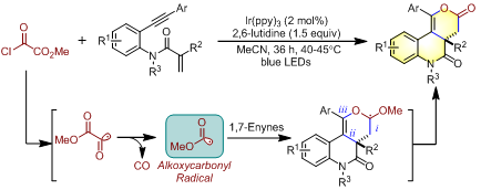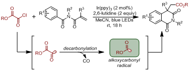 3. M. Ji, L. Xu, X. Luo, M. Jiang, S. Wang, J.-Q. Chen,* J. Wu,* Alkoxycarbonyl Radicals from Alkyloxalyl Chlorides: Photoinduced Synthesis of Isoquinolinediones under Visible Light Rrradiation, Org. Chem. Front., 2021, 8, 6704. (SCI一区)