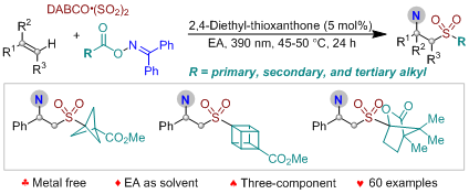 11. M. Chen, W. Sun, J. Yang, L. Yuan, J.-Q. Chen,* J. Wu,* Metal-Free Photosensitized Aminosulfonylation of Alkenes: A Practical Approach to β-Amido Sulfones. Green Chem., 2023, 25, DOI: 10.1039/D3GC01059G. (SCI一区)