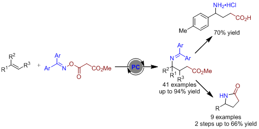 7. X. Wang, Y. Chen, P. Liang, J.-Q. Chen,* J. Wu, * Synthesis of γ-Amino Acids via Photocatalyzed Intermolecular Carboimination of Alkenes, Org. Chem. Front., 2022, 9, 4328. (SCI一区)
