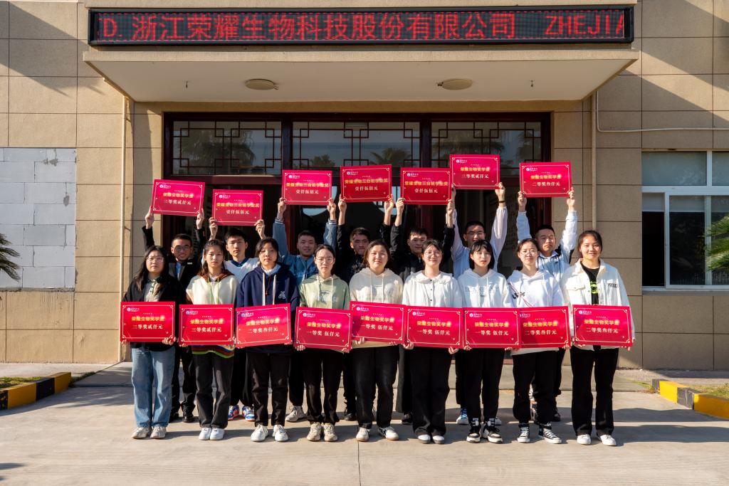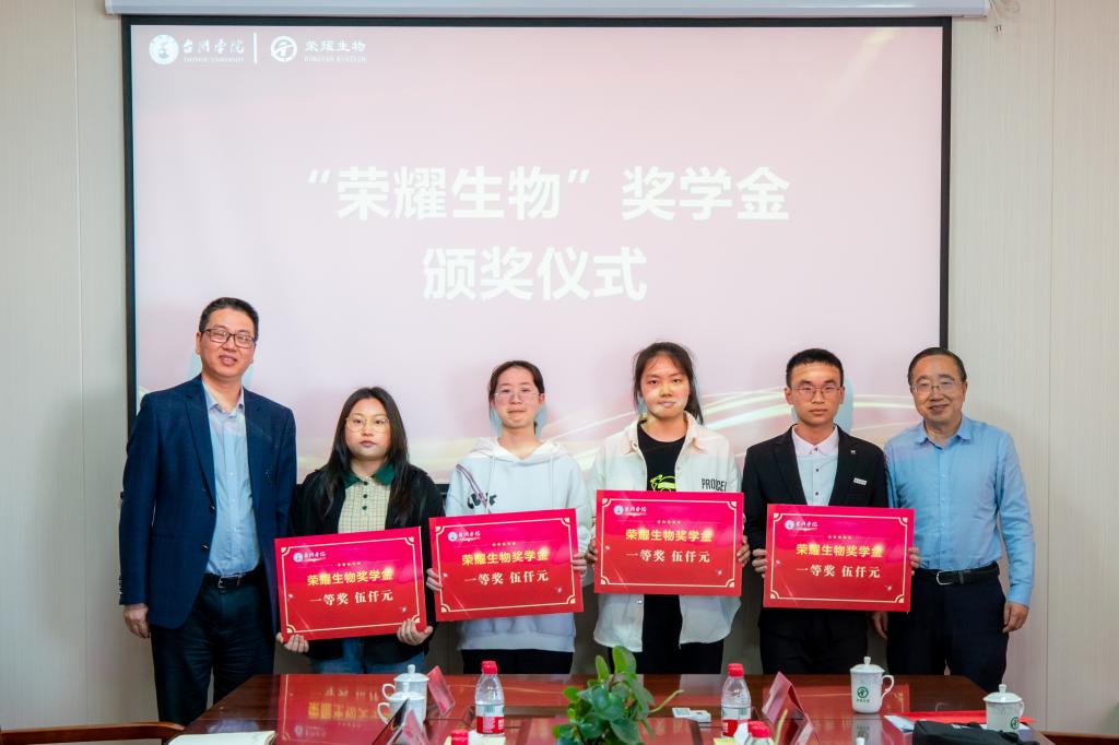 为发挥优秀员工的模范表率作用,树立先进典范,创建优良学风,激励员工刻苦钻研、踔厉奋进。3月10日,在浙江荣耀生物科技股份有限公司举行“荣耀生物”奖学金颁奖仪式。出席颁奖仪式的有公司党委委员、副董事长王正,荣耀生物公司董事长陈仁尔、公司党委书记徐元红、教授、博士等,颁奖仪式由公司党委副书记书记刘贵花主持。