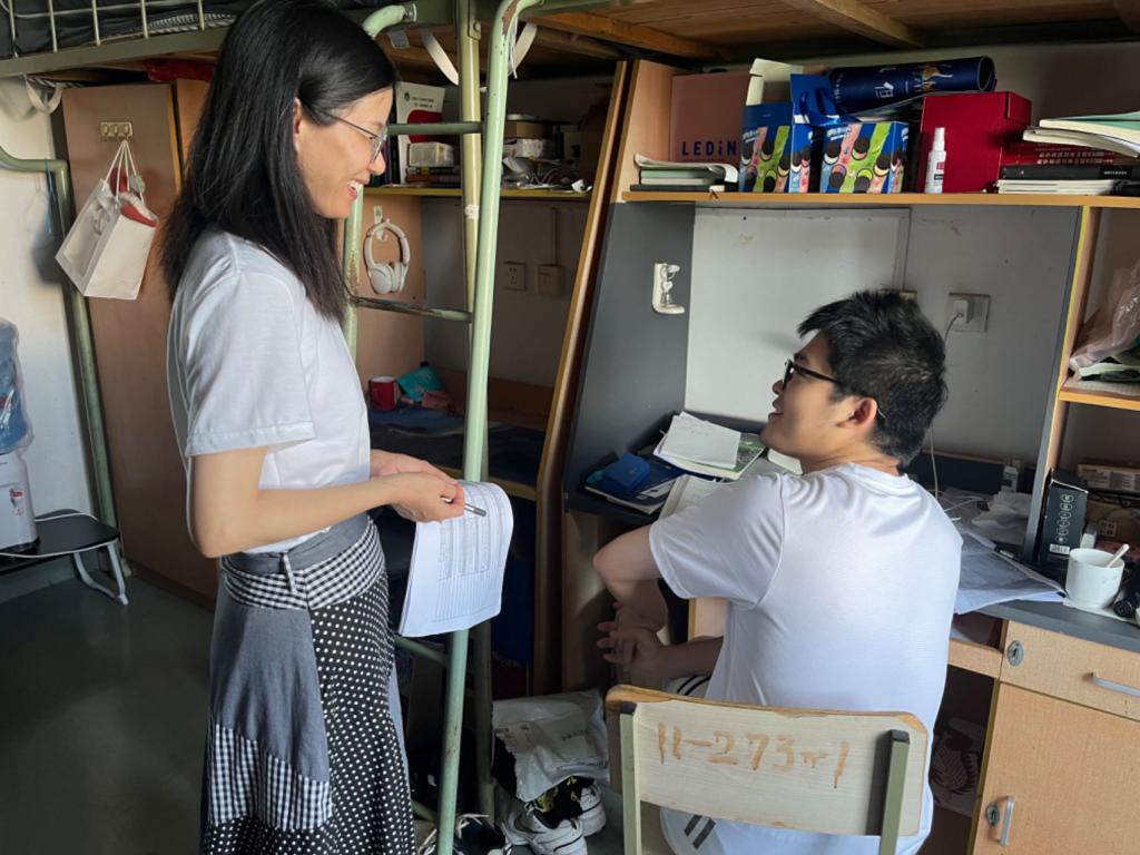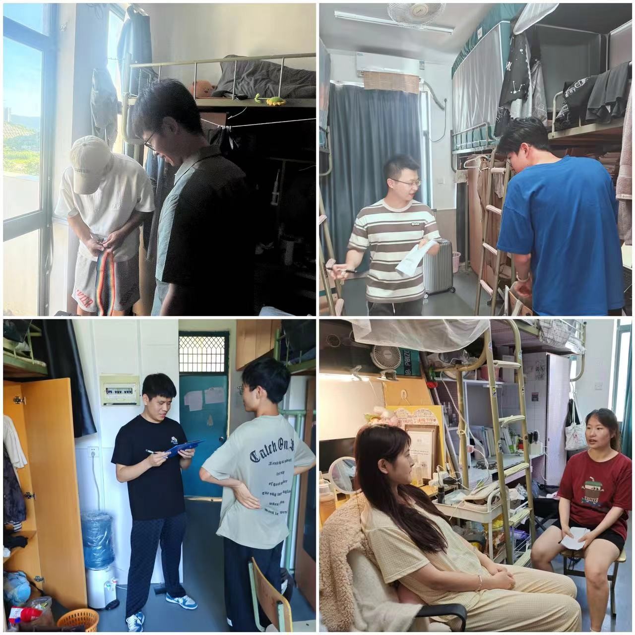 走访过程中,老师们与留校员工就考研计划、科研情况、社会实践等进行了深入交流,询问同学们在校期间的学习、生活情况,提醒同学们务必将安全工作放在首位,遵守校纪校规,履行留校承诺,警惕电信诈骗,增强防火、防电、防溺水意识,注意交通安全、食品卫生安全等;充分利用暑假期间为自己充电,劳逸结合,健康生活,实现暑期自我提升。走访过程中还摸排了个别未经易班申请擅自留校员工情况,同时对留校员工寝室的卫生情况和安全隐患进行了专项检查,对于排查出来的安全隐患作了详细登记,并督促当场整改。