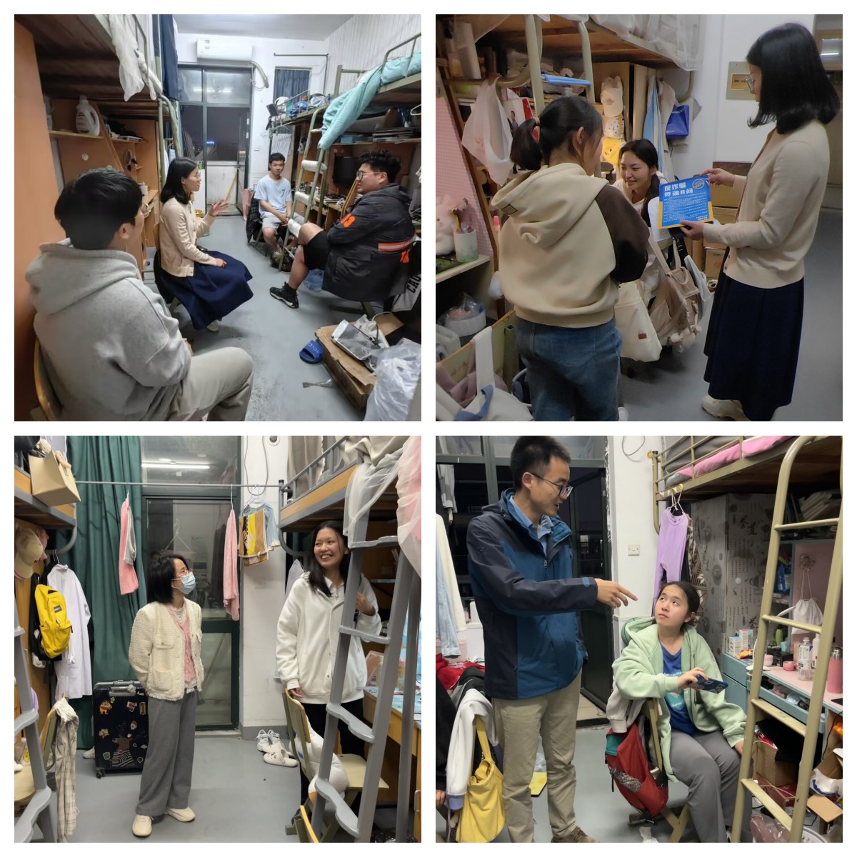 检查过程中,老师们还对员工的假期安排、职业规划、心理健康状况等方面进行座谈了解。针对近期诈骗案件高发的特点,使用反诈灵魂八问的宣传资料对于同学们进行了防诈知识宣讲。