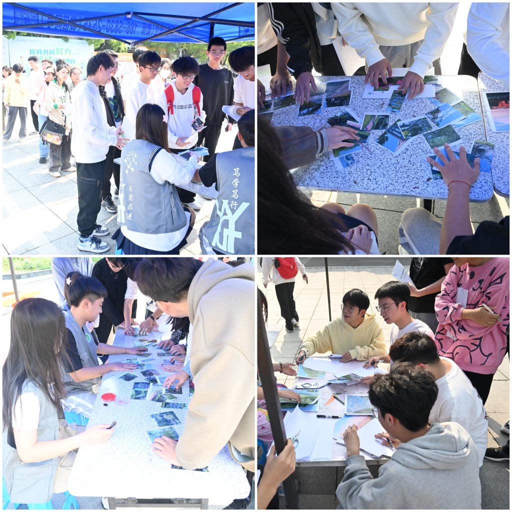 活动分为“校园美景拼图”和“校园美景猜猜看”两项内容。活动前期,工作人员用硬卡纸将照片打印下来,并裁剪成拼图,为活动做准备,并通过微信推文等形式进行广泛宣传,吸引了众多同学慕名前来参加。现场活动过程中,同学们通过不断尝试与调整,将零碎的照片拼成了完整的校园美景,准确说出了美景所在位置,展现了敏锐的观察力和出色的专注度。