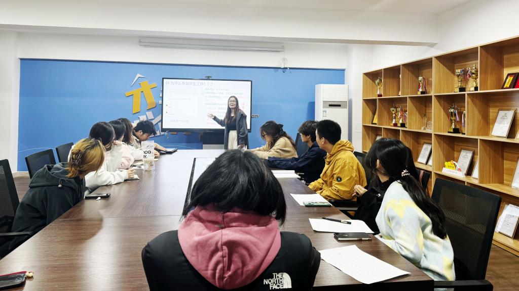 三位优秀员工干部代表冯烨焓、陶俊蓉、王阳康结合自身经历和工作实际,通过ppt从学科竞赛、科研项目、校园文化活动等方面分享了自己在学习和工作中的经验和感悟,展现了优秀员工干部拼搏奋斗、进取向上的良好精神风貌。他们勉励学弟学妹们要合理规划时间,注重提升专业学习能力和科研实践水平,发挥模范带头作用,在工作中做到大处着眼、小处着手,以身作则。