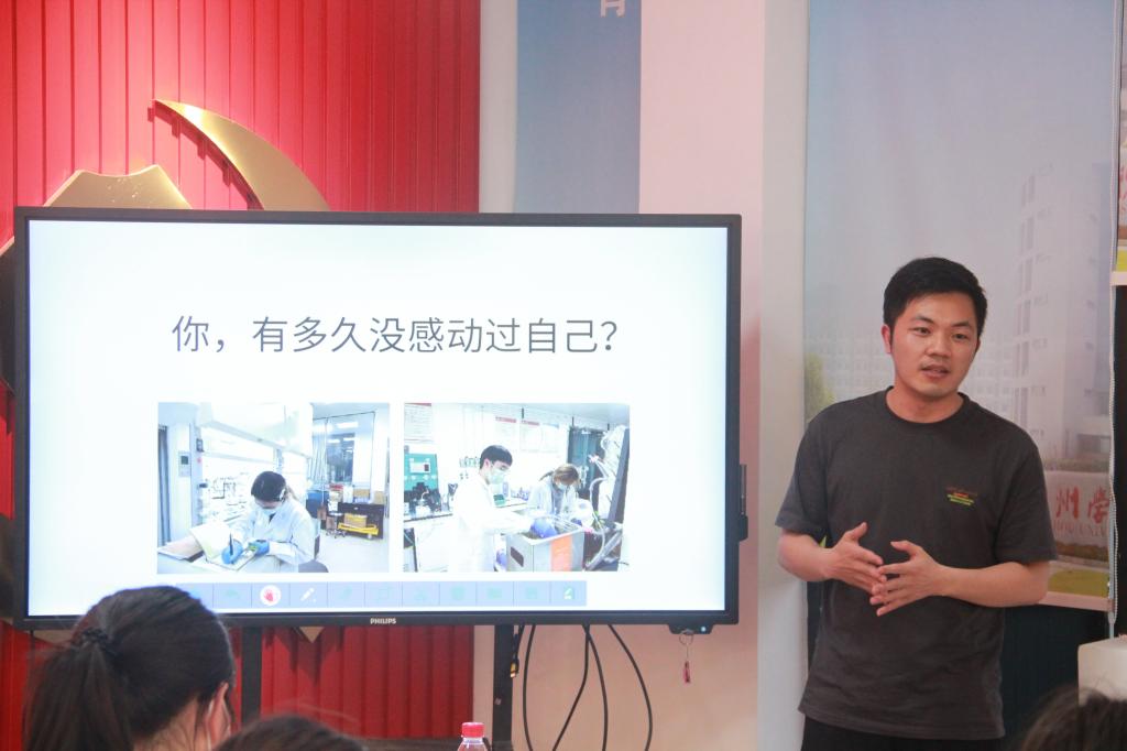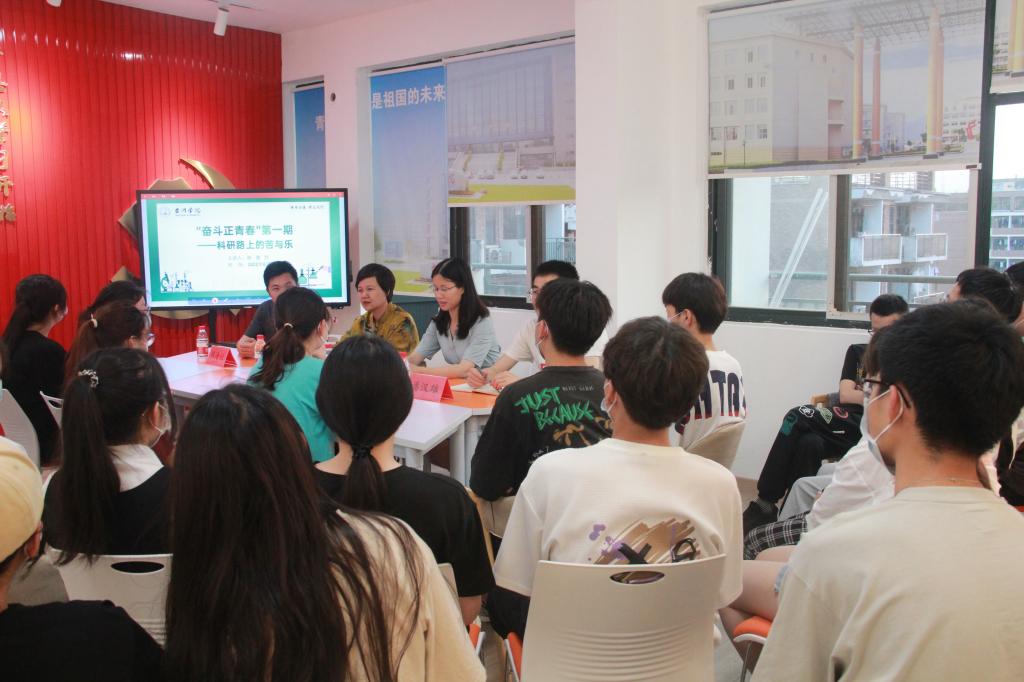 陈逢灶以“你有多久没感动过自己?”为互动话题,结合自己的亲身经历分享了科研道路上的一些故事。他指出, 科研的“苦”在于实验失败时的茫然与无助,在于论文投稿被拒数次的失落与彷徨,在于读博第一年日夜重复某一工作时的无聊与乏味,更在于与导师交流研究方向时的紧张与匆忙……但庆幸的是,科研的路上也伴随着美好的人与事:院士导师的鼓励肯定让他自信满满,阶段性实验的成功完成让他信心大增,论文最终被接收让他心满意足……他希望同学们要心中有火,眼里有光,不负青春,勇敢去闯,平时科研实验时努力做到“五要”:一是要有目标并不懈奋斗;二是要持续努力,机会是留给有准备的、敢于争取的人;三是要牢记“失败不可怕,可怕的是你害怕失败”;四是要学会投资自己,劳逸结合,学会平衡;五是要记住“嚼得菜根,做得大事”。讲座结束后,师生进行了热烈的交流与讨论。