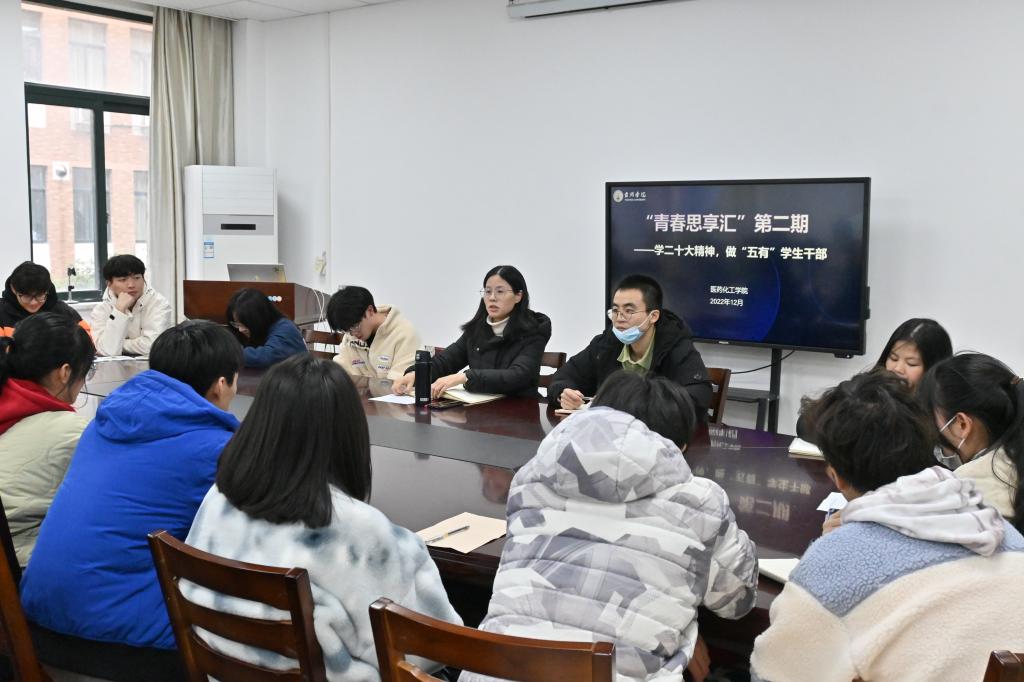 为深入学习宣传贯彻党的二十大精神,教育引导广大团学干部坚定不移听党话、跟党走121日,VSport体育在公司党员之家举办以“学二十大精神,做‘五有’员工干部”为主题的第二期“青春思享汇”主题活动。公司党委副书记刘贵花出席活动,分团委书记潘汉雄和全部部长级同学参与活动。