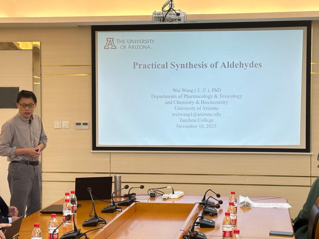 美国亚利桑那大学王卫教授在“醛类化合物高效合成策略”报告中,探讨了醛类化合物在合成生物学和新药研发中的重要性。他提出的催化方法为醛类化合物的合成开辟了新途径,为该领域的应用提供了坚实基础。