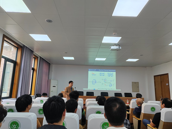 讲座中,李昊研究员以“基于动态共价键发展三维分子的精确构建”这一关键学术问题为切入点,精彩讲解了如何以分子内超分子作用力为驱动力实现高效甚至定量的选择性合成;同时,利用“多重共价键增强亚胺键稳定性”原理和疏水效应实现主客体识别和分子三叶结的合成;此外,进一步利用“杂原子共振效应”开发了一类基于酰腙与肟键且与水溶液兼容的动态共价键的自组装方法。